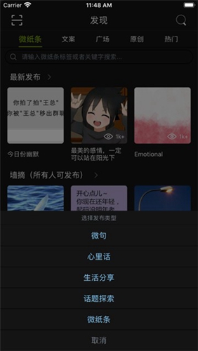 6、在发现页面,快速发现原创的微句