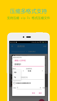 1、支持多种常见的压缩文件格式,包括ZIP、RAR、7Z、TAR等,能够满足用户处理各种压缩文件的需求;