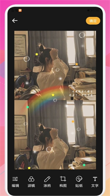 3、贴纸神器,贴纸库是你想要的任何风格的集合,你可以用心搭配你想要的效果。