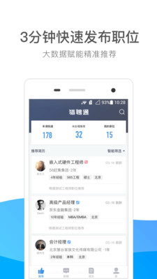 【简历推荐】猎聘通app每天为所有在招职位智能推荐百位候选人,招聘从未如此轻松!