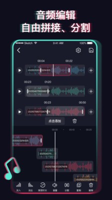 2、丰富音频混剪功能,提供多种混剪工具,允许用户自由组合不同的音频片段;