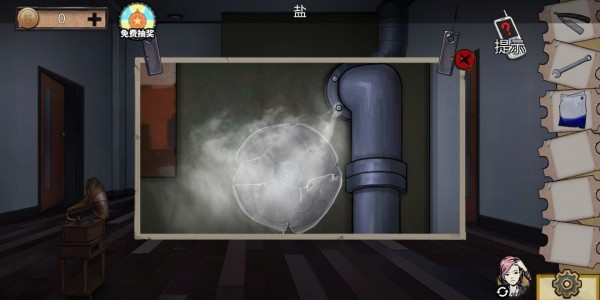 37、男主用扳手拧紧管道口的螺丝以后拿到冻唱片,把唱片用盐化开,把唱片放在唱片机上得到女主的房间密码4806,把唱片传给女主放到唱片机上获得男主的房间密码5492。