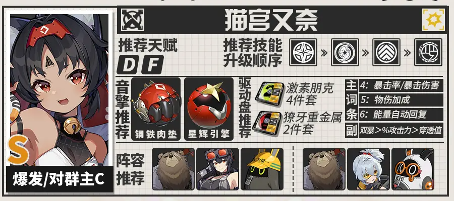 绝区零猫又是一位物理属性的五星角色,其技能能够对敌人造成大量的物理伤害,同时自身的机动性很高而且操作灵敏,本篇内容小编为大家带来绝区零猫又音擎驱动盘配队一图流攻略。