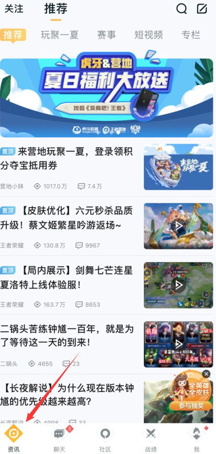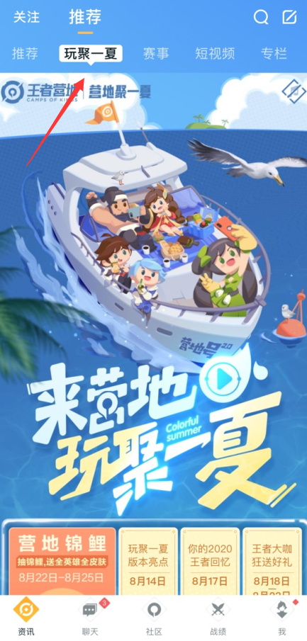 3、进入资讯后,玩家在推荐里面,可以看到欢聚一下,玩家点击打开玩聚一夏。