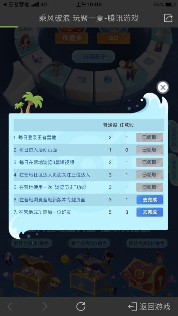 2、接着玩家王者营地的任务页面,随后点击去完成,就会跳到主页,再点击左下角的资讯。