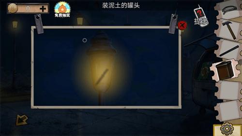 2、接着玩家用装有泥土的罐头砸如图所示的路灯,可以得到小刀,然后用小刀划开包装得到玩具枪。
