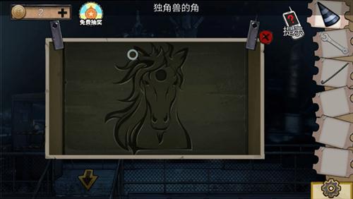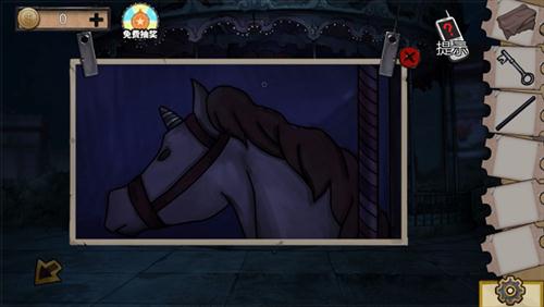 2、随后玩家在旋转木马的嘴里拿到钥匙和角,在旁边拿到铁棒。