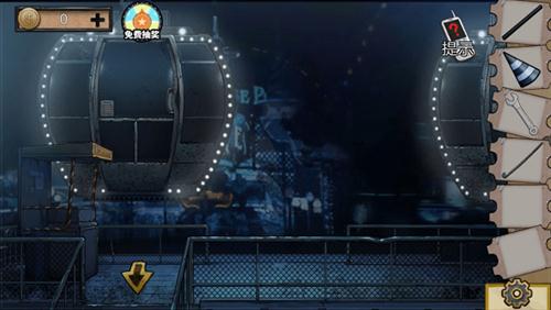 8、再次等到摩天轮亮了之后,玩家用铁棒撬开门,里面有个箱子,把木马的角放上去,可以得到轮子。