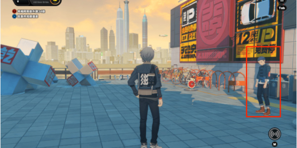4、传送至【光映广场-步行区域】,向后转看到【黑自龙涂鸦墙壁】,给涂鸦拍照,返回NPC(山姆)交付任务即可。