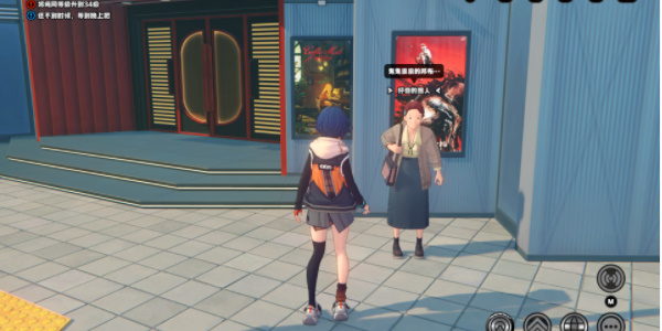 5、传送至【光映广场-报刊亭】,左转直走到电影院门口看到NPG(好奇的路人),对话接取【谜语人同好会·其三】。