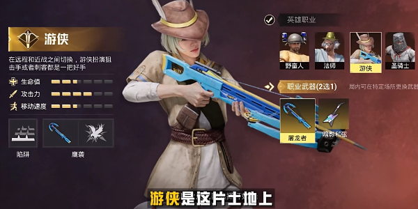 擅长布置陷阱,被捕获的猎物将被原地禁锢,可以使用自己的屠龙十字箭,配合致盲敌人的猎鹰攻击,还可以在战斗中隐藏身形,然后进行暗中偷袭。