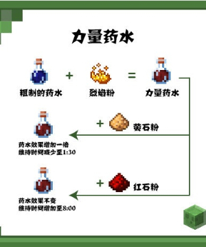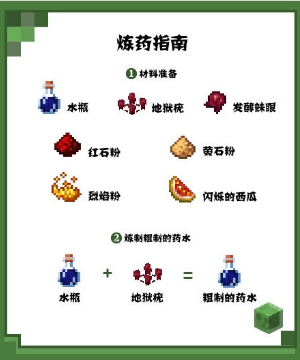 药水配方?:恶魂之泪+闪烁的西瓜+烈焰粉+岩浆膏+糖/蜘蛛眼+水瓶。