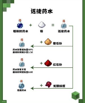 药水配方:迅捷药水/跳跃药水+发酵蜘蛛眼。