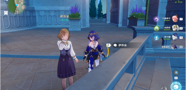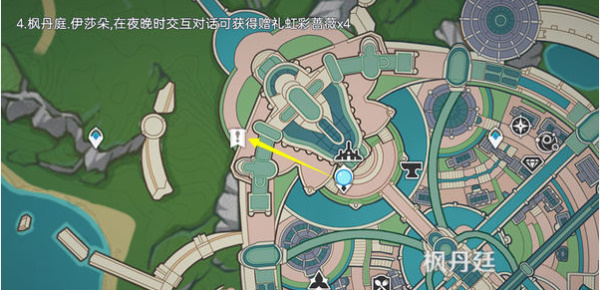 11、在枫丹庭·沫芒宫找到npc审计官伊莎朵(仅在夜晚出现),交互对话获得虹彩蔷薇x4。