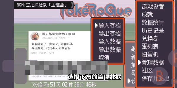 1、进入游戏,打开右下角的菜单,然后在菜单栏中选择【管理数据】选项。