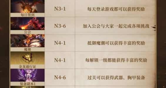 玩家进入游戏除了消耗体力推进关卡,每天绝不要忘记去重要玩法"打卡",尤其是公会首领、竞技场、魔潮、阵营试炼这些不需要体力就能参与的玩法,这些玩法能为你带来丰厚的奖励。