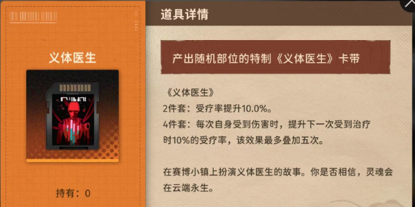 4件套:每次自身受到伤害时,提升下一次受到治疗时10%的受疗率,该效果最多叠加五次。