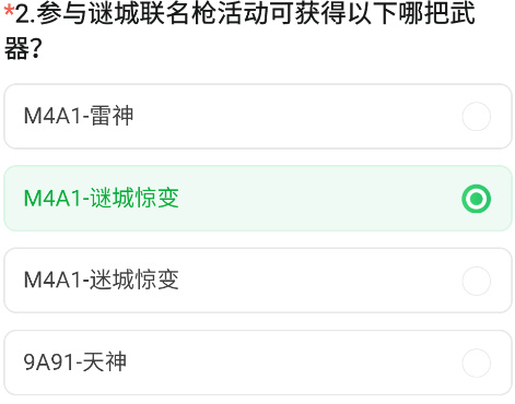 问题2:参与谜城联名枪活动可获得以下哪把武器?