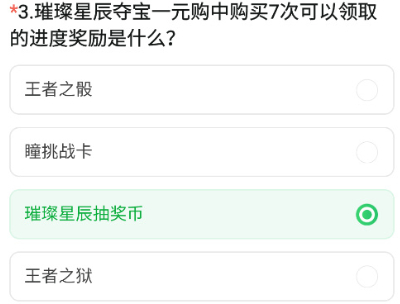 3、璀璨星辰夺宝一元购中购买7次可以领取的进度奖励是什么?