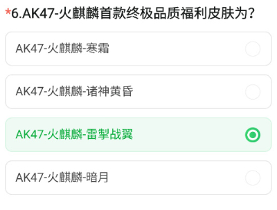 6、AK47-火麒麟首款终极品质福利皮肤为?
