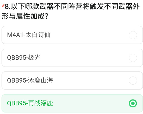 问题8:以下哪款武器不同阵营将触发不同武器外形与属性加成?