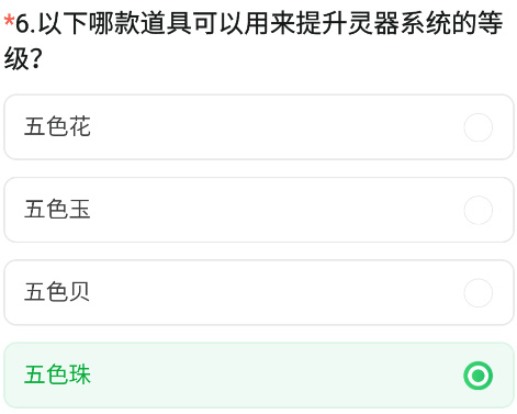 问题6:以下哪款道具可以用来提升灵器系统的等级?