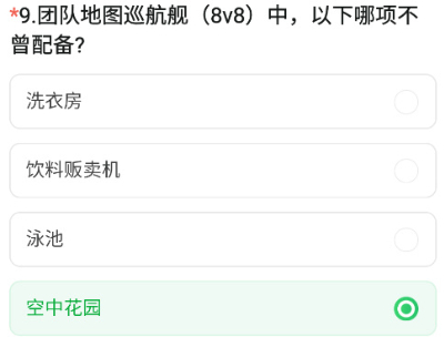 9、团队地图巡航舰(8v8)中,以下哪项不曾配备?