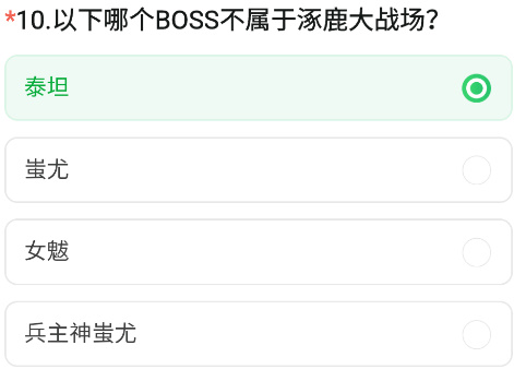 问题10:以下哪个BOSS不属于涿鹿大战场?