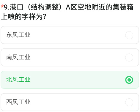 问题9:港口(结构调整)A区空地附近的集装箱上喷的字样为?