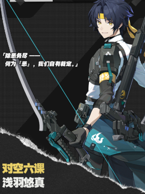 浅羽悠真是一位电属性强攻角色,他是对空六课的成员,主要应对空洞中的突发事件,他的上司是副课长月城柳,以及对空六课课长星见雅。