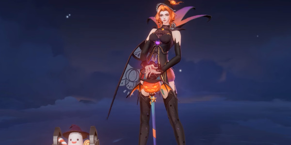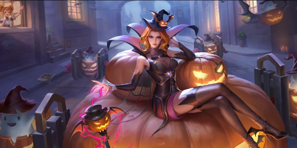 皮肤设计融合经典的哥特风格,通过南瓜手杖、尖顶帽和小蝙蝠等元素的精心搭配,营造出神秘奇幻的氛围。召唤出的小兵也化身可爱的小幽灵,与米莱狄一起参与这场盛大的庆典。