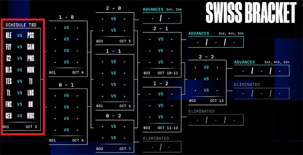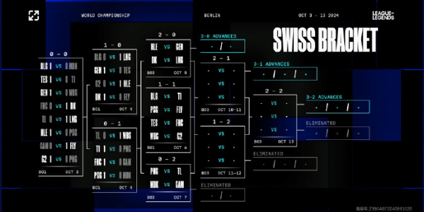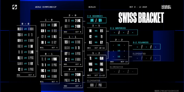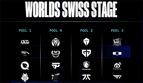 进入到瑞士轮的十六支队伍将会被分为4个池子,开始进行赛程的抽签,从而决定后续的对决流程,4个池子的具体情况分别是: