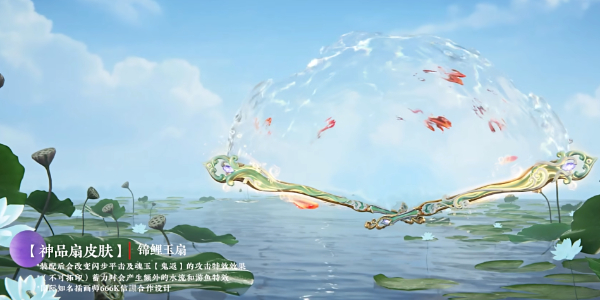 剔透的水化作晶莹的扇面 ,锦鲤悠游点缀其中;可谓秋夜升寒月华明,白露凝珠聚水扇!