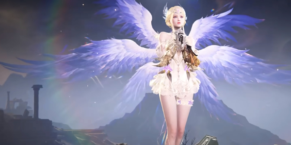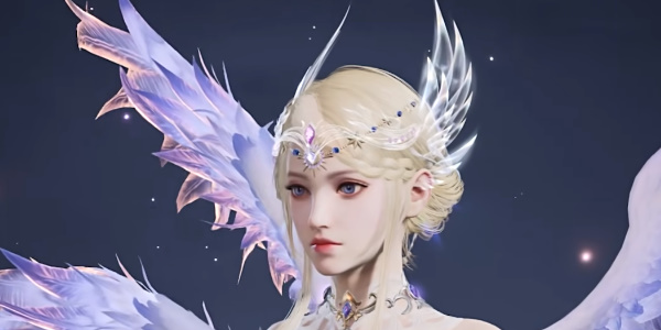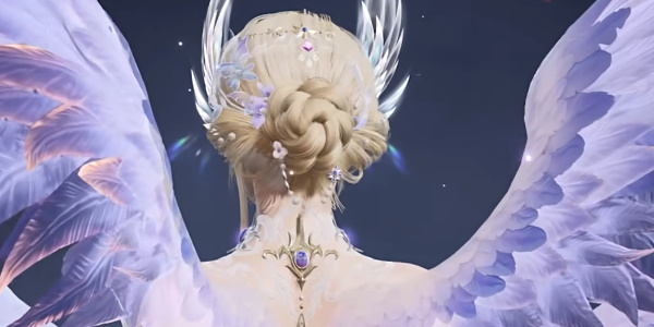 月华白纱悠悠流光,六翼仙羽翩翩轻扬,宛若九霄云外之仙子,携光辉悠然尘世行。