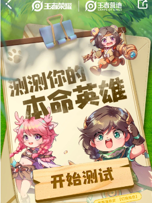 1、玩家复制上方的网址到浏览器中即可进入王者荣耀本命英雄测试活动页面。