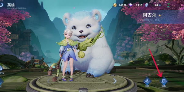 3、在阿古朵的英雄详情页面点击右下角的【情报】按钮。