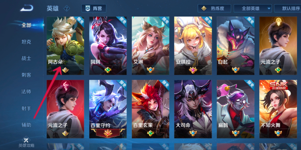 2、在英雄页面找我们随便点击一个英雄进入他的详情页面,如阿古朵。