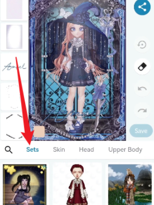 2、在下方的【Sets】功能里挑选自己喜欢的套装给角色进行装扮。