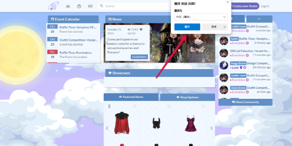 我们使用Microsoft Edge浏览器打开everskies游戏网页后会自动在网页上分出现翻译按钮,我们点击就可以将其翻译为中文,在其他浏览器上我们可以在设置中找到翻译选项,然后将其翻译为中文页面。
