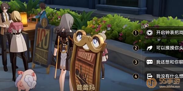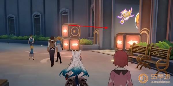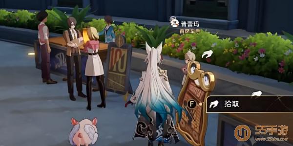 1、离开折纸大学入口处的传送锚点后往前走,然后在路口右转找到广告牌后的npc普蕾玛,和她进行对话。