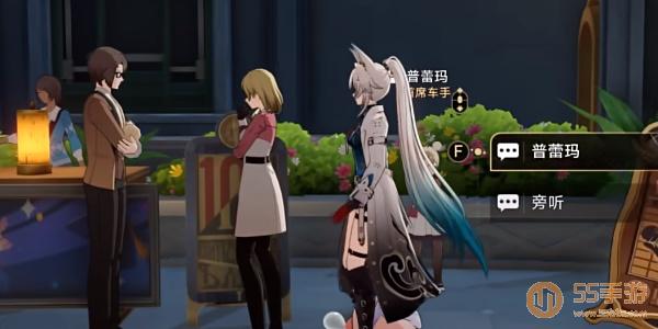 1、在npc普蕾玛旁边我们选择“旁听”旁边的npc对话。