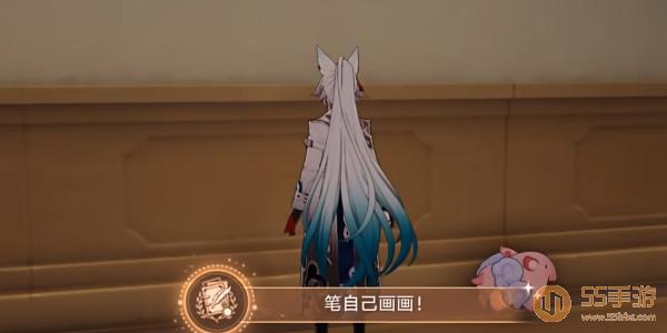 2、在走廊第二处空白的墙壁上我们进行自由绘画,就可以获得成就【笔自己画画!】。
