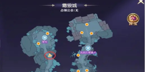 1、打开地图找到图里的位置,地上有一堆冰石点击技能进行攻打。