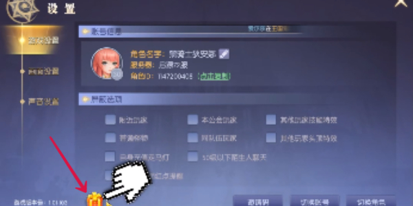 2、在设置界面点击左下角的“礼包兑换”图标就可以进入兑换界面。