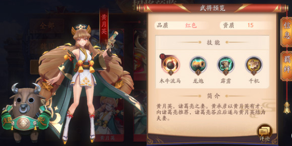 3、黄月英的上场几率十分的低,有的人都甚至不会去用黄月英。